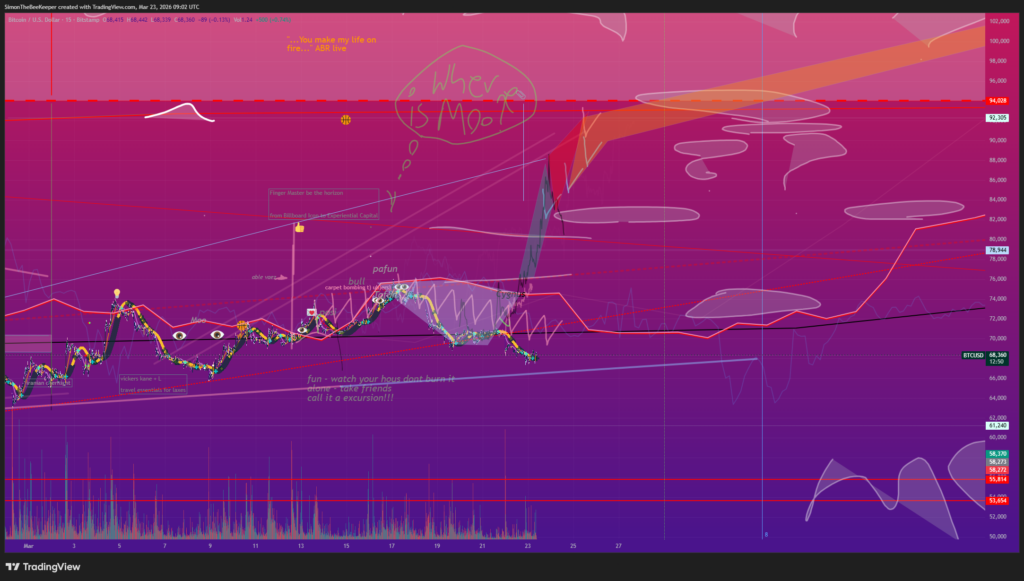 • The Ghist: This isn’t just a price point; it’s the psychological floor of the entire bull cycle. If Trump’s 48-hour deadline passes tonight without a “Calm,” and we lose $68k, the next “Gallery” isn’t until the $60k-$63k range.